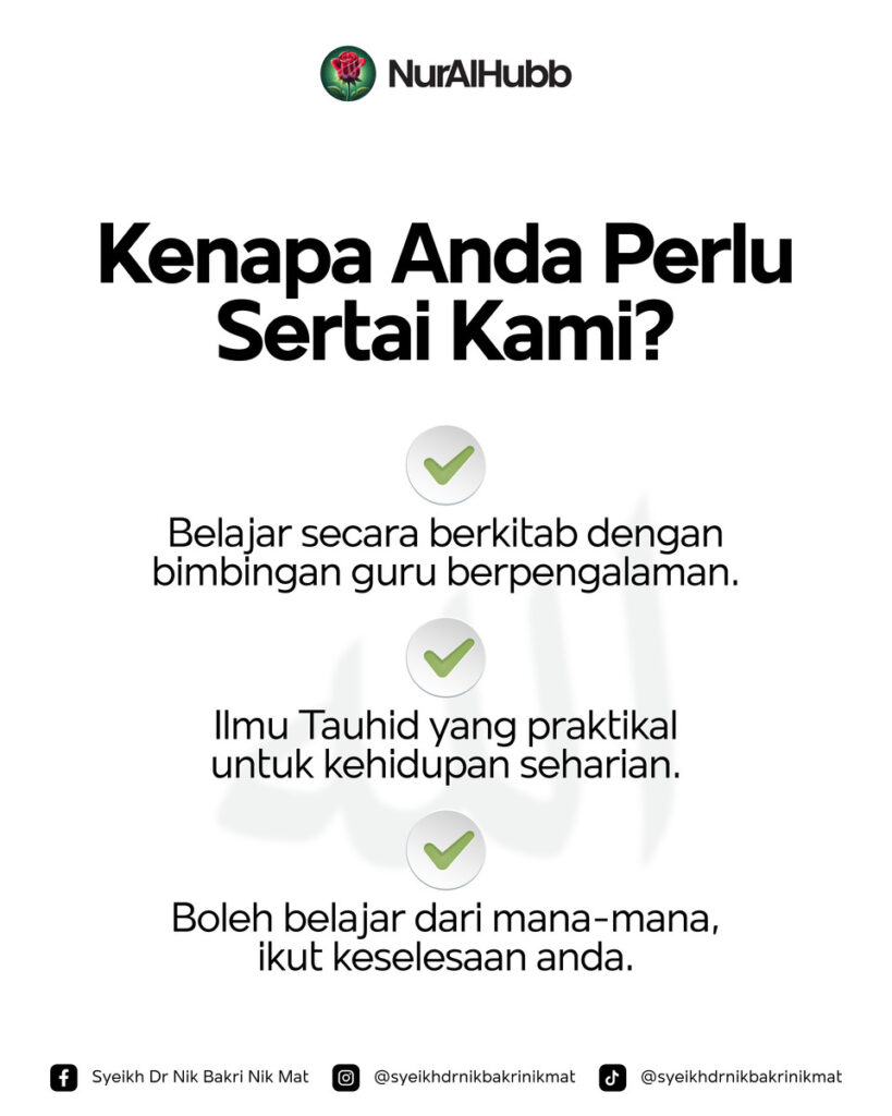 Daftar segera agar anda tidak terlepas peluang mengikuti pengajian Fardhu Ain dan Fiqh Solat secara Online β lengkap dengan bimbingan dan rakaman kelas yang tersusun.