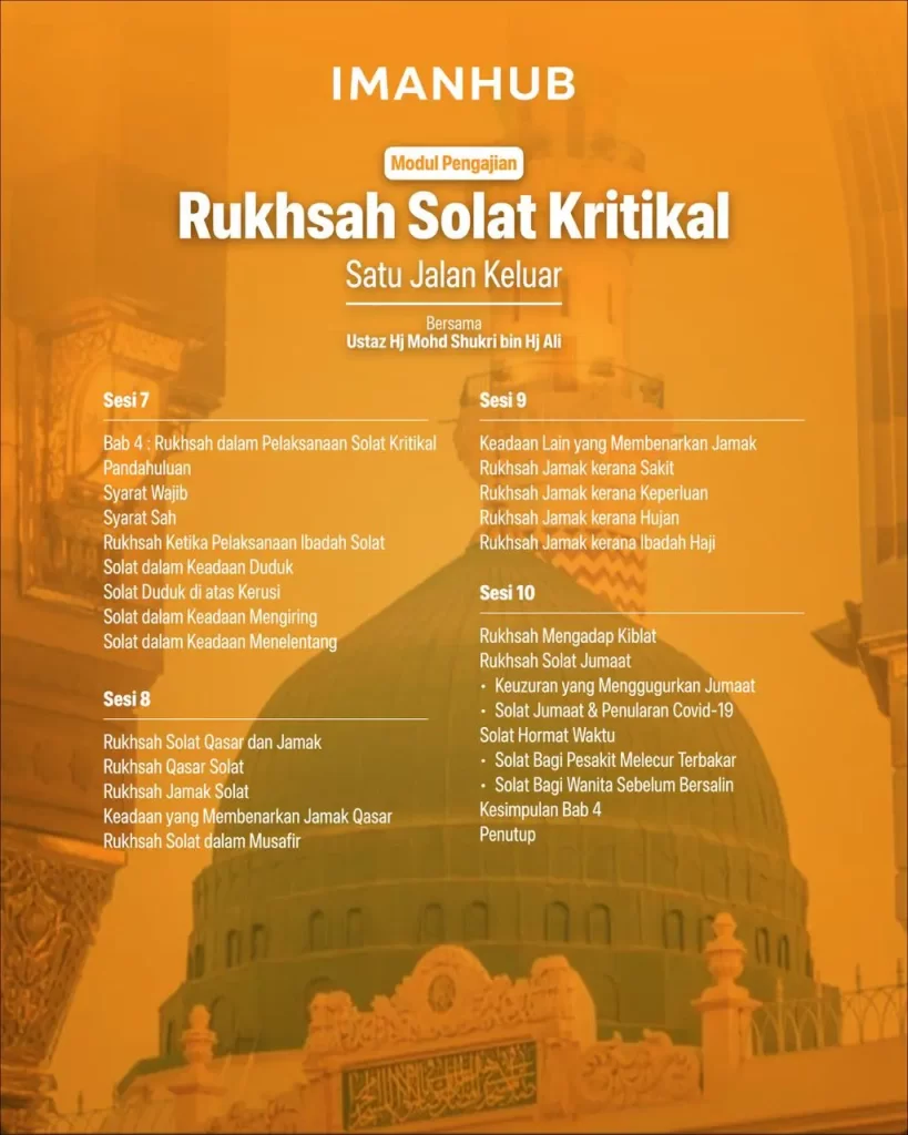β‘οΈ Belajar terus daripada sumber yang jelas dan sahih β bukan sekadar panduan umum, tetapi berpandukan kitab dan panduan ulama tentang rukhsah solat bagi pelbagai situasi (sakit, musafir, kerja syif dan lain-lain).